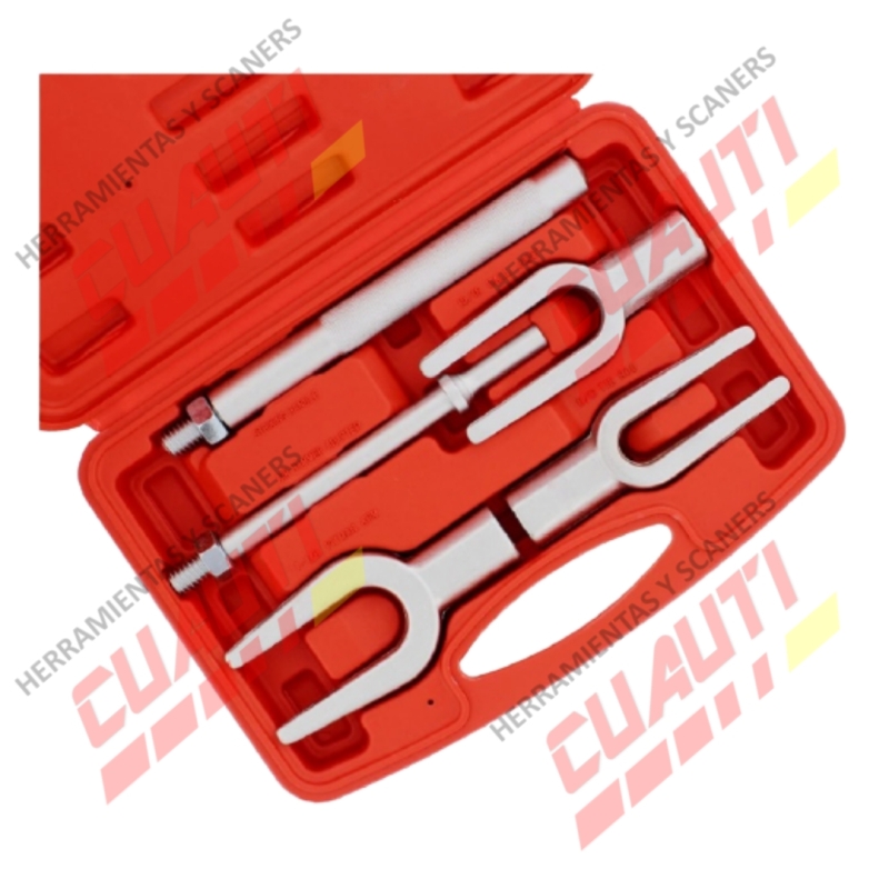 ESTE KIT DE HERRAMIENTAS DE 5 PIEZAS DE RÓTULA, BARRA DE ACOPLAMIENTO Y BRAZO PITMAN ES PARA SEPARAR BRAZOS PITMAN, BARRAS DE ACOPLAMIENTO Y JUNTAS ESFÉRICAS EN COCHES Y CAMIONES LIGEROS PARA RECONSTRUIR LA SUSPENSIÓN DELANTERA Y COMPONENTES DE DIRECCIÓN EN TU VEHÍCULO