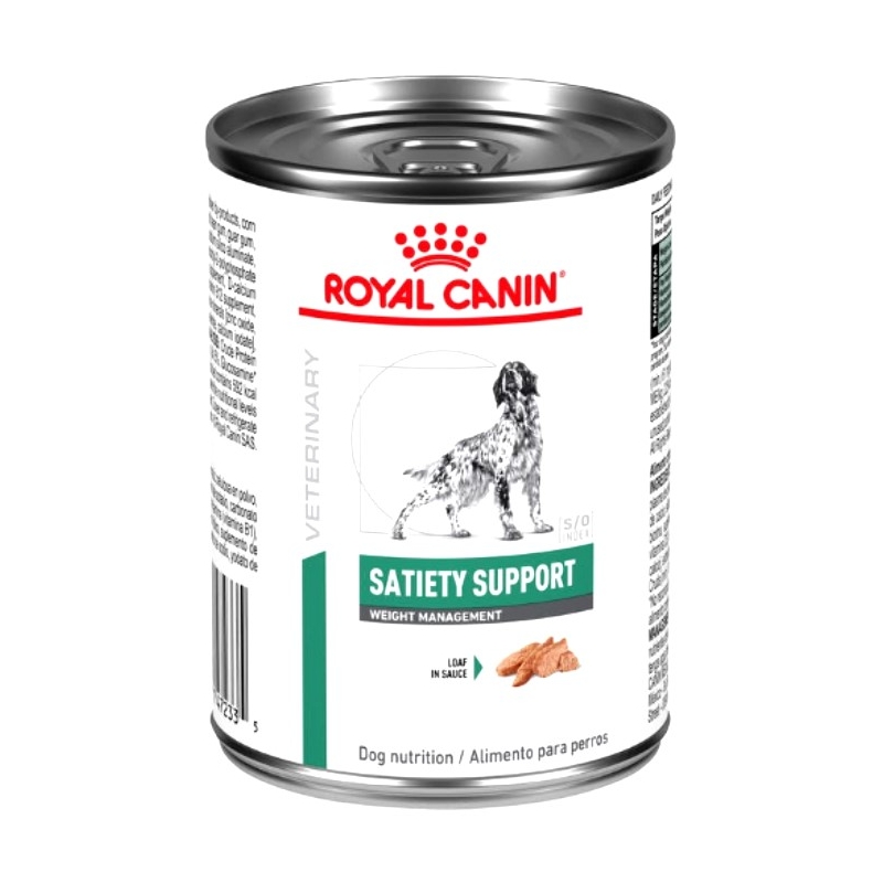 Alimento húmedo Royal Canin Satiety Support Weight Management para perros obesos, con sobrepeso y diabetes mellitus tipo II. Disponible en: 380g.