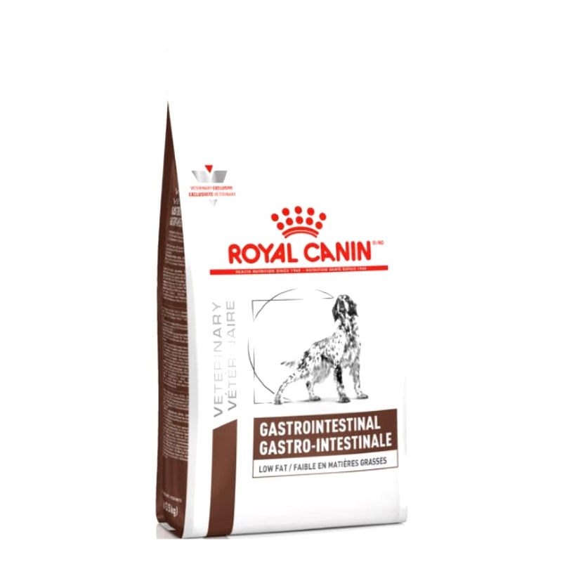 Alimento seco Royal Canin Gastro-Intestinal Low Fat para perros con pancreatitis aguda y crónica, diarrea aguda y crónica, insuficiencia ancreática exócrina (IPE), hiperlipidemia, síndrome de mala absorción, deficiencia de ácidos biliares, parásitos intestinales, diarrea por cambio de dieta y síndrome del intestino delgado. Disponible en: 3kg, 8kg, 13kg