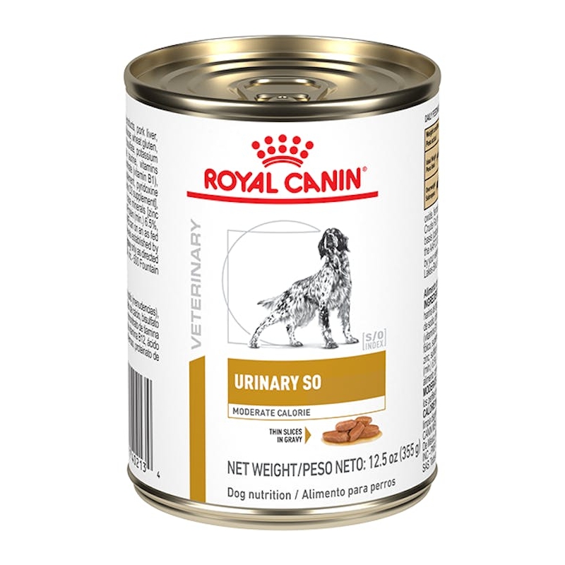 Alimento húmedo Royal Canin Urinary SO Mod Cal Morsels in Gravy para perros adultos en riesgo de desarrollar trastornos de tracto urinario inferior o que ya los padezcan y que poseen sobrepeso o tendencia al sobrepeso: Disolución de urolitos de estruvita, Prevención de urolitos de estruvita, Ayudar a prevenir la formación de oxalato de calcio y Ayudar a prevenir la formación de fosfato de calcio (brucita). Disponible en: 360g.
