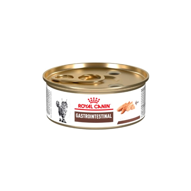 Alimento húmedo Royal Canin Gastro-Intestinal Feline Loaf para gatos con transtornos gastrointestinales, diarrea aguda y crónica, enfermedad intestinal inflamatoria (EII), mala digestión, mala absorción, colitis según estado clínico, convalecencia, sobrecrecimiento bacteriano, gastritis, enteritis y colitis. Disponible en: 150g.