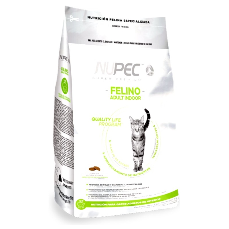 Alimento seco Nupec para gatos adultos con poca actividad física. Estamos conscientes de que un felino con un estilo de vida hogareño tiene necesidades nutricionales especiales. Por ello, hemos formulado una nutrición especializada con un balance de ingredientes que regulan el sistema nervioso y mantienen una condición corporal saludable.