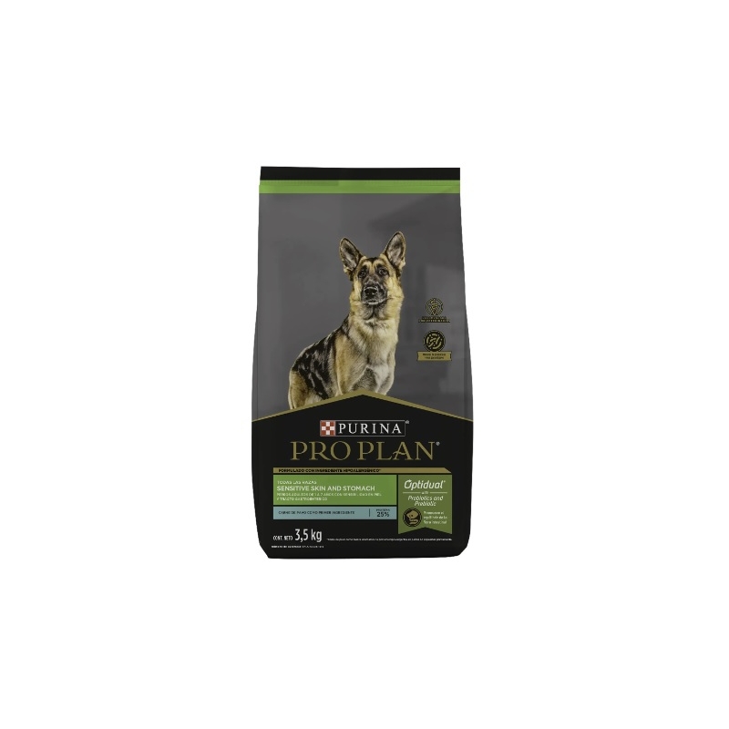 Alimento seco Pro Plan para perro adulto con sensibilidad en la piel y tracto intestinal. Alimento completo y balanceado para perros adultos de todos los tamaños con piel y tracto intestinal sensibles.