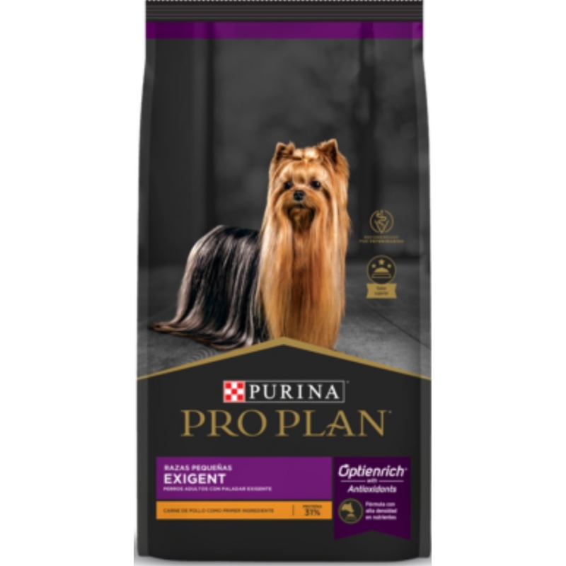 Alimento seco Pro Plan para perro adulto de raza pequeña con paladar exigente. Provee nutrición que podrás percibir por medio de un pelaje sano y brillante con un sabor único que los perros de razas pequeñas con los paladares más exigentes disfrutaran. Nutrición de vanguardia que satisface las necesidades específicas de perros adultos de razas pequeñas con paladares exigentes, para que alcancen un estado de salud óptima y un bienestar general. Tamaños disponibles: 1kg y 3kg.