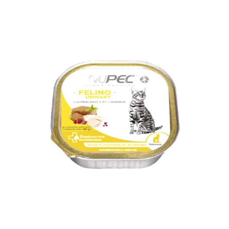 Alimento húmedo Nupec para gatos adultos de todas las razas, auxiliar en el equilibrio del pH urinario. Charola de 100 g.