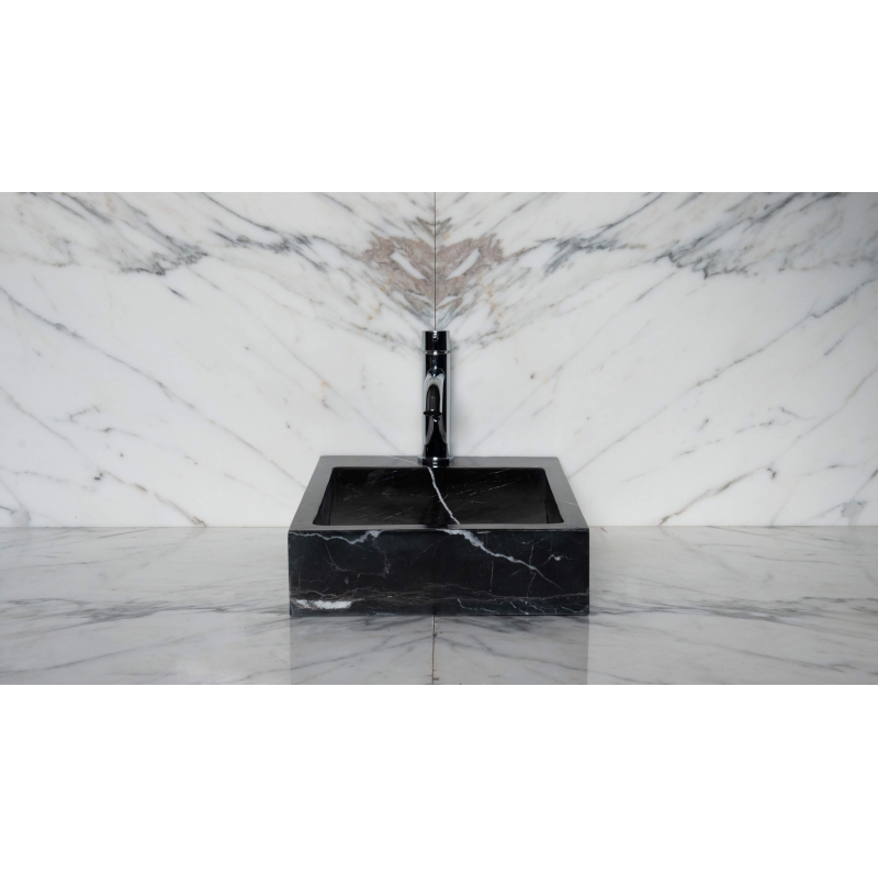 This Small square washbasin in polished black marble can be an excellent solution for small bathrooms.