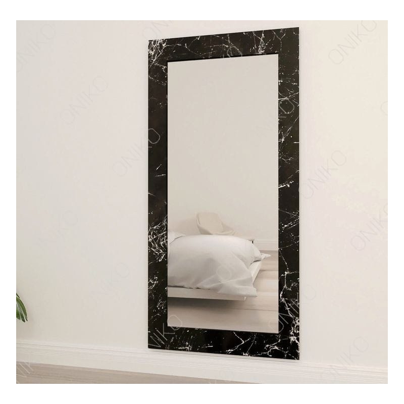 Elegant and modern mirror with frame made of black marble with a glossy polished finish.