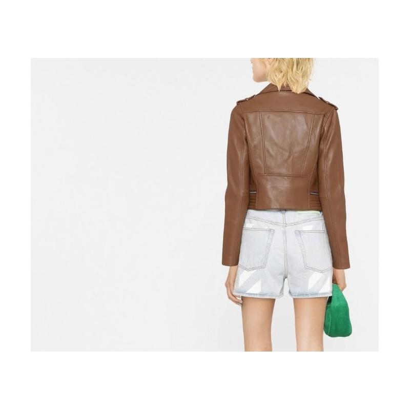 The lightweight jacket by BOSS Orange is made from high-quality lambskin with a varied visual effect. Striking panel seams add rocker flair to the feminine design. The diagonally positioned zip gives the style an individual look, resulting in a great layered effect when worn open.