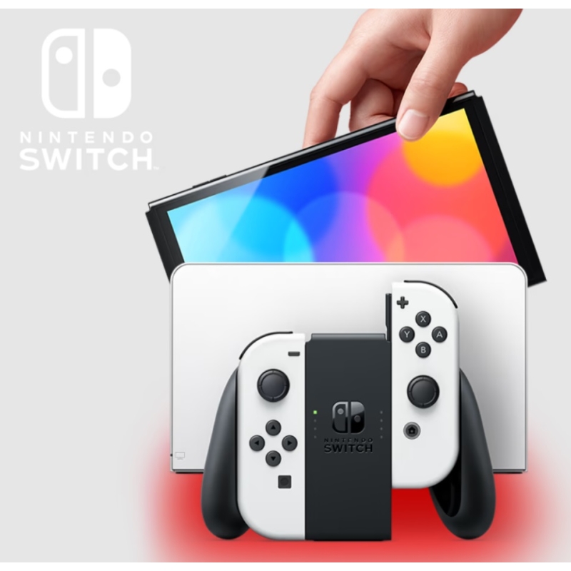 Introducing the latest console to join the Nintendo Switch family The new console features a vibrant OLED display with a wide adjustable stand, a dock with a LAN port for wired connection, 64GB internal storage and enhanced audio. With white Joy-Con controls, black console and a white base. Game at home on your TV or on the go with a vibrant 7-inch (17.78 cm) OLED display with the Nintendo Switch console – OLED model. In addition to the screen, which offers bright colors and sharp contrasts, the Nintendo Switch - OLED model includes 64 GB of internal storage, a base with a LAN port for wired connection to play on TV, a wide adjustable stand and audio improved. Feast your eyes on bright colors and sharp contrasts when gaming on the go. See what a difference a vibrating display makes when you're racing at full throttle or battling your enemies