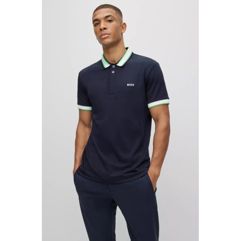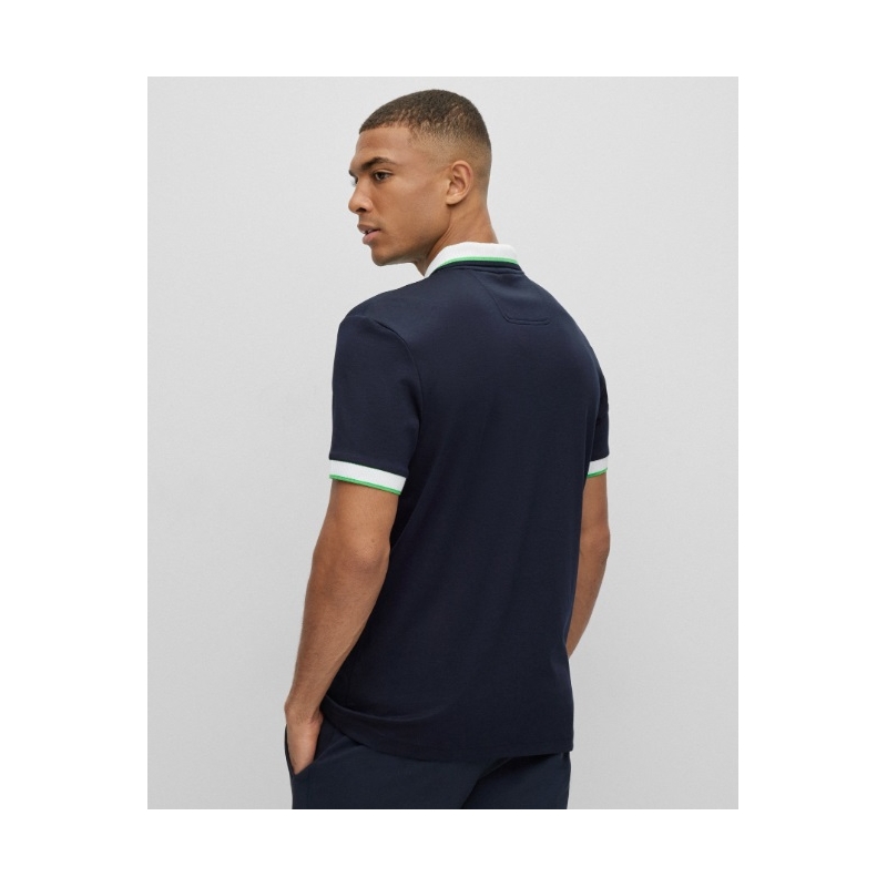 Jersey de corte recto de BOSS Orange en mezcla de materiales de punto fino con lino y algodón. El estampado de punto en contraste en las mangas raglán y en la parte delantera crea el aspecto llamativo de esta prenda ligera. El gran escote en pico confiere un toque moderno.