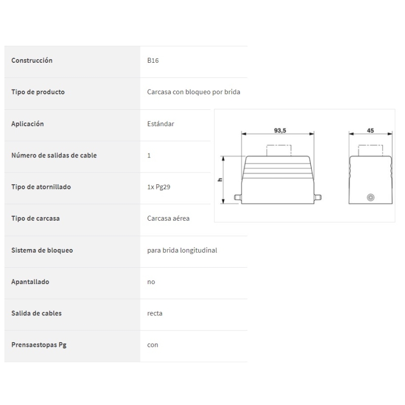 Carcasa de manguito B16, para cierre sencillo, altura: 76 mm, con 1 conexión de tornillo Pg29, salida de cable recto PHOENIX CONTAC