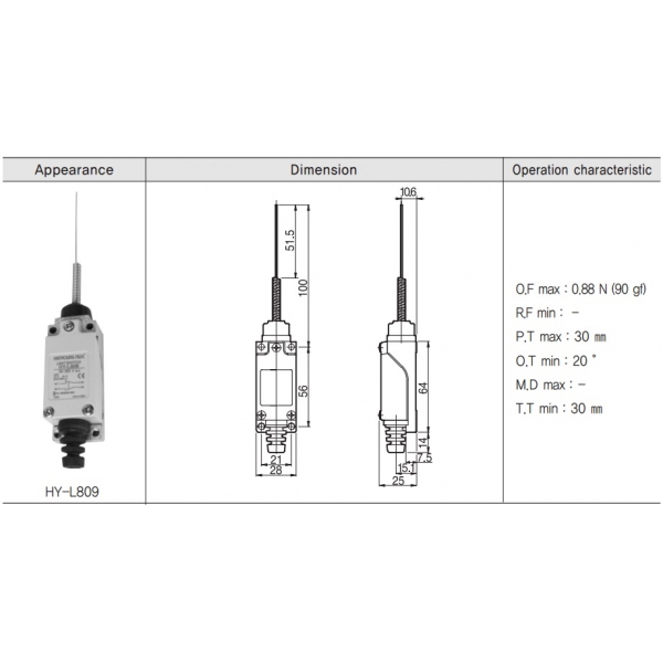 Mini Limit Switch con Actuador de Resorte Contacto 1NA+1NC 6amp HANYOUNG
