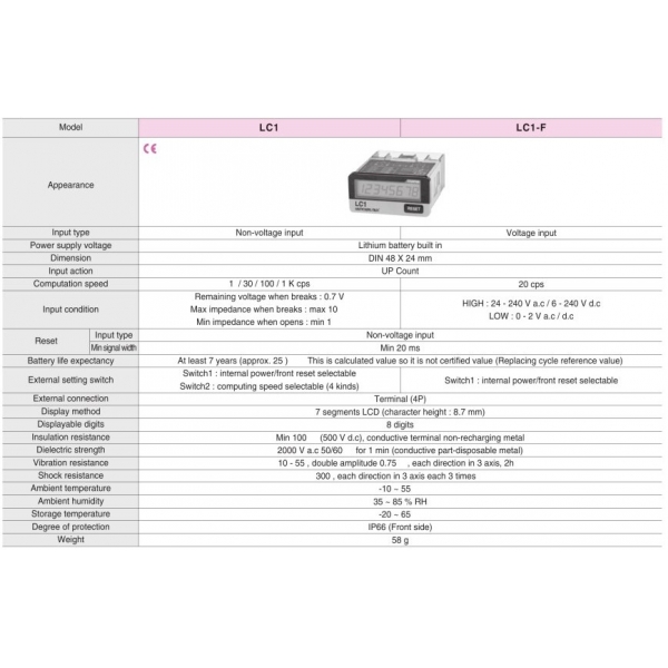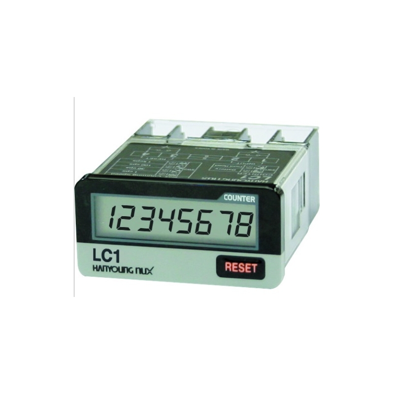 Contador Totalizador 8 digitos LCD con voltaje 24/240vca/6/240 vcd 20 CPS 48x24mm reset frontal o remoto HANYOUNG