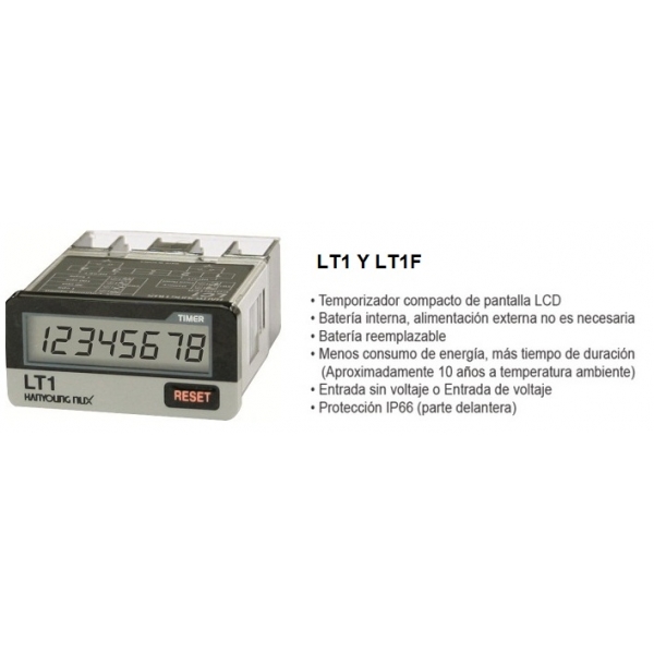 Horómetro con voltaje 24-240vca / 6-240vcd 8 digitos LCD 48x24mm con reset frontal o remoto(programable en min,seg,hr) HANYOUNG