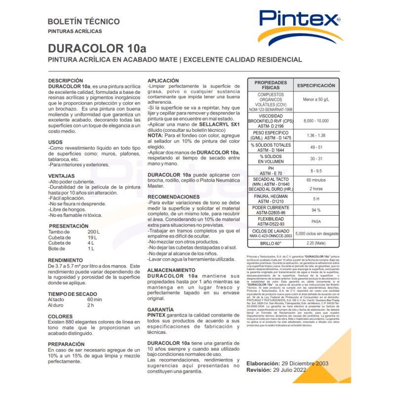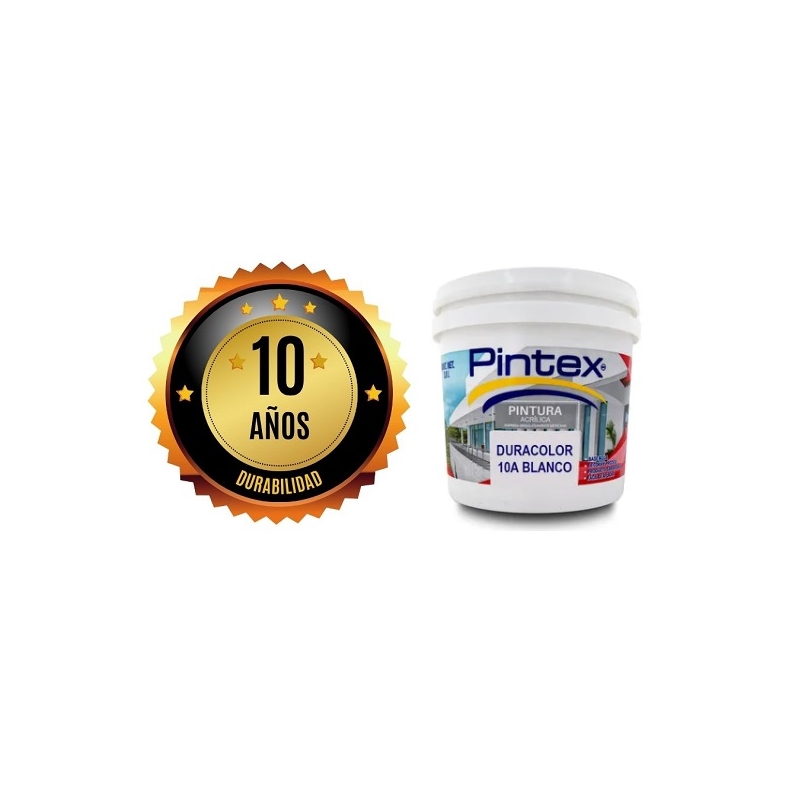 Pintura acrílica Duracolor 10 años de durabilidad de pelicula bajo condiciones normales de uso, acabado mate cubeta 19 Litros (similara Vinimex) PINTEX