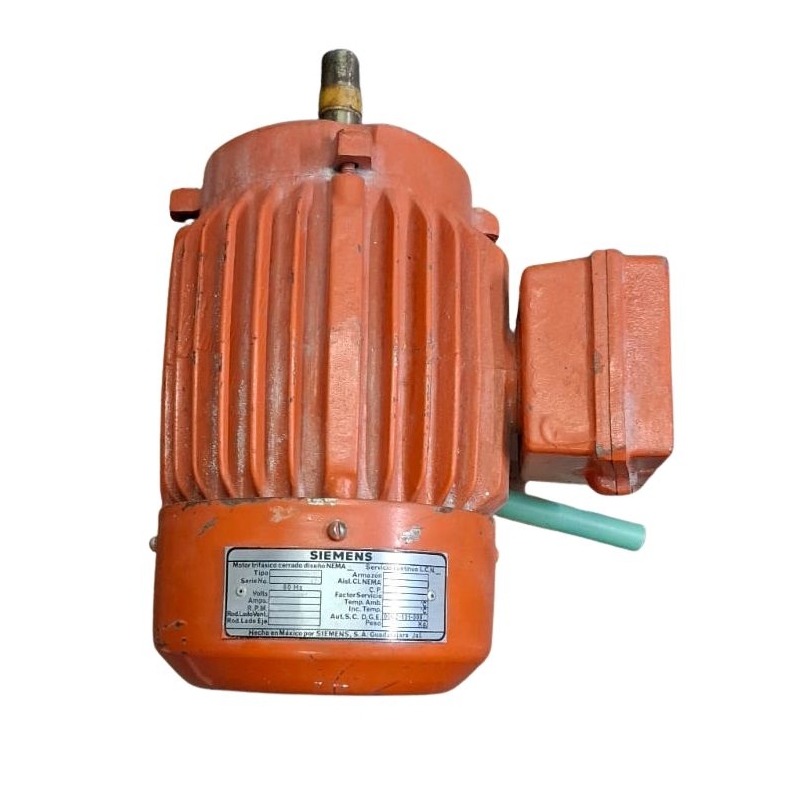 Motor Eléctrico 1HP 4 Polos 220/440v 143T (1435rpms) 3 Fases, Factor Servicio 1.00 color naranja, peso 23.6kgs SIEMENS