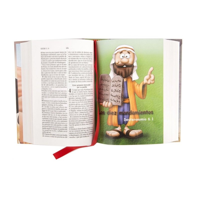 Ahora los niños de seis años en adelante pueden contar con toda una Biblia para ellos solos. Posee hermosos dibujos a todo color, textos que orientan al niño acerca de cómo leer la Biblia y lo que puede hallar en las Escrituras, y lecturas para dias especiales.
