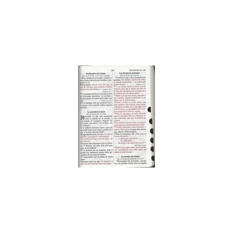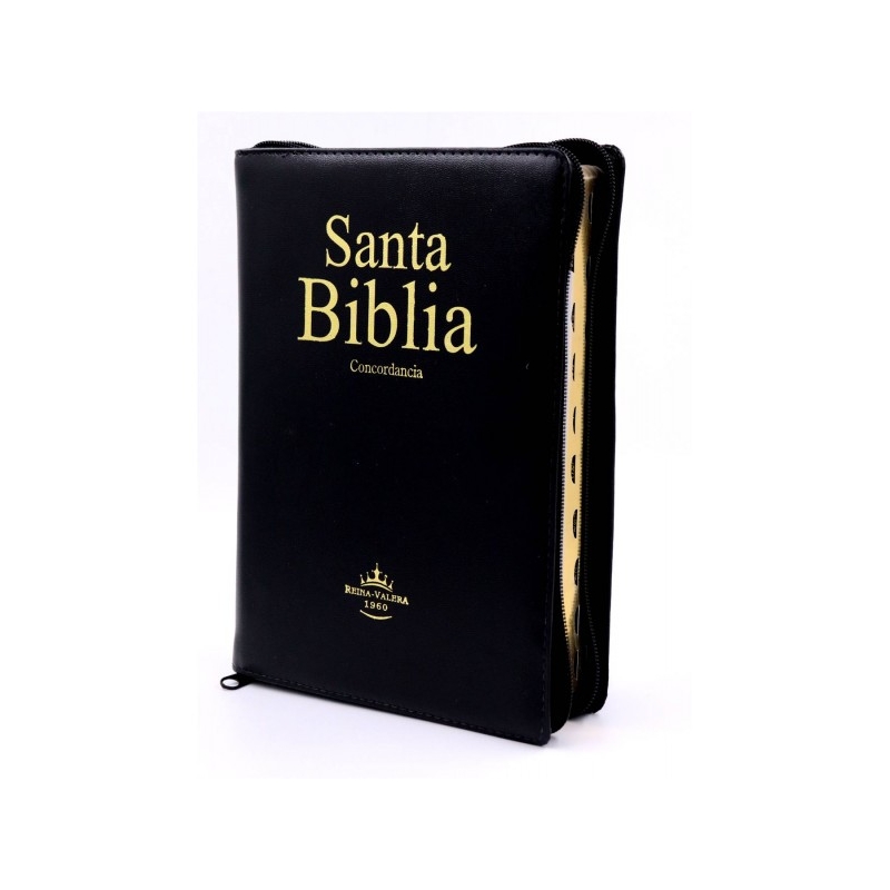 Especificaciones Técnicas Tamaño grande, encuadernación imitación piel color negro, letra gigante, palabras de Jesús en rojo, índice, cierre, acolcada