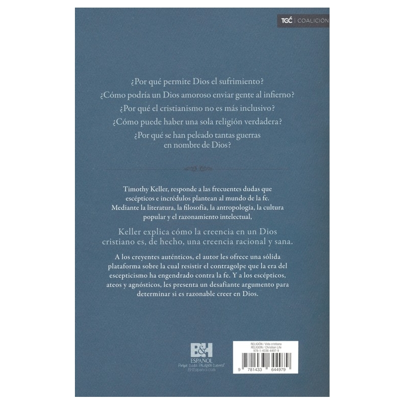 Mediante la literatura, la filosofía, la antropología, la cultura popular y el razonamiento intelectual, Keller explica cómo la fe en un Dios cristiano, es de hecho, una fe racional y sana.