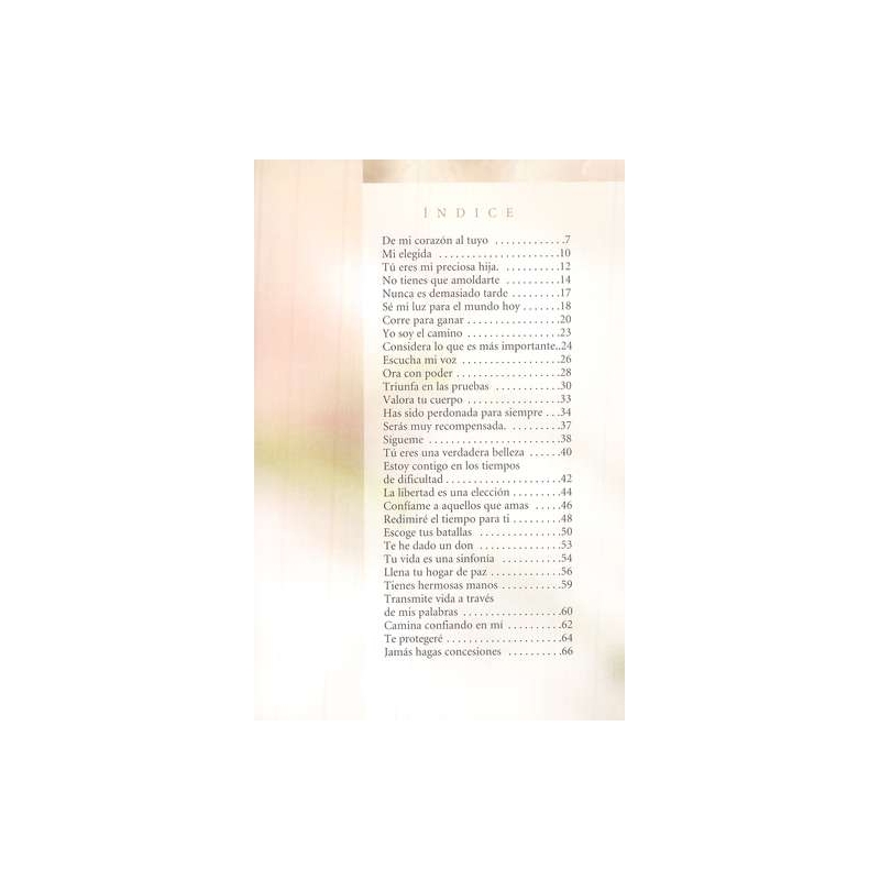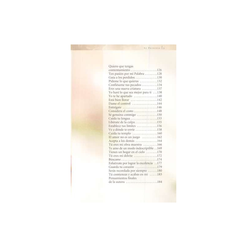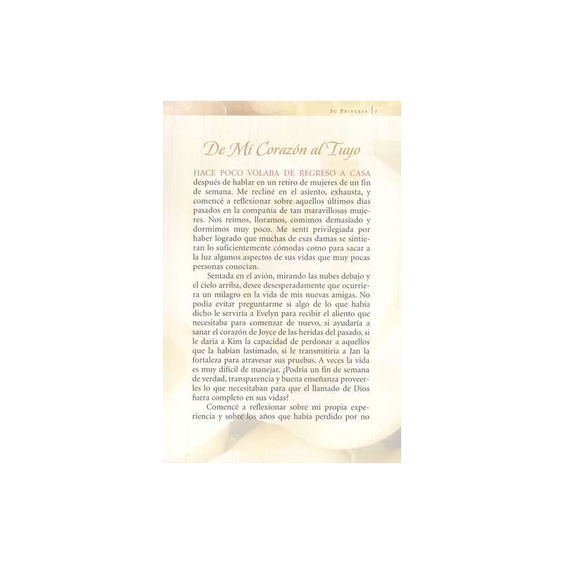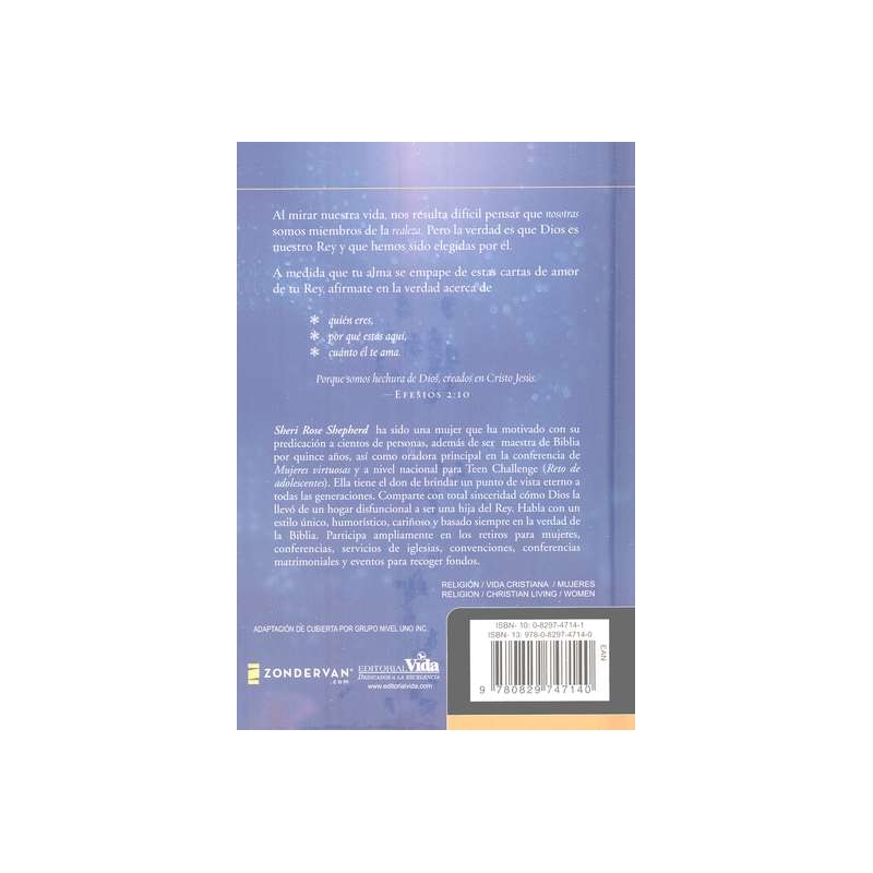 Este hermoso libro a color abrirá los ojos de las mujeres para que se vean como Dios las ve. Muchas ni siquiera saben que son hijas del Rey... elegidas para ser sus princesas. En algún momento entre la niñez y la adultez los sueños de hadas de ser amadas cambian por una identidad empañada por sus propias inseguridades y los mensajes confusos de los medios de comunicación. Ahora, estas encantadoras cartas escritas desde la perspectiva de Dios les demostrarán que toda mujer es bella justo como es. Si caminan con confianza hacia el propósito que Dios les trazó, toda mujer podrá ser una bendición para otros, incluso para las generaciones futuras.
