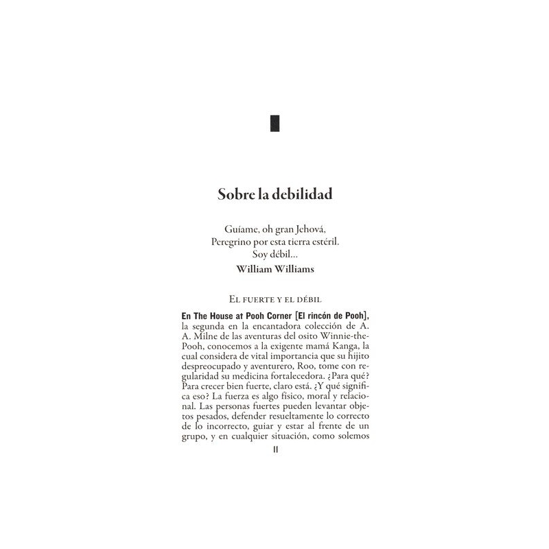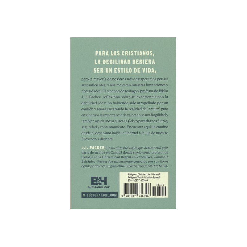Para los cristianos, la debilidad debiera ser un estilo de vida, pero la mayoría de nosotros nos desesperamos por ser autosuficientes, y nos molestan nuestras limitaciones y necesidades. El reconocido teólogo y profesor de Biblia JI Packer, reflexiona sobre su experiencia con la debilidad (de niño habiendo sido atropellado por un camión y ahora encarando la realidad de la vejez) para enseñarnos la importancia de valorar nuestra fragilidad y también ayudarnos a buscar a Cristo para darnos fuerza, seguridad y contentamiento. Encuentra aquí un camino desde el desánimo hacia la libertad a la luz de nuestro Dios todo suficiente.