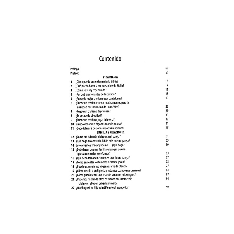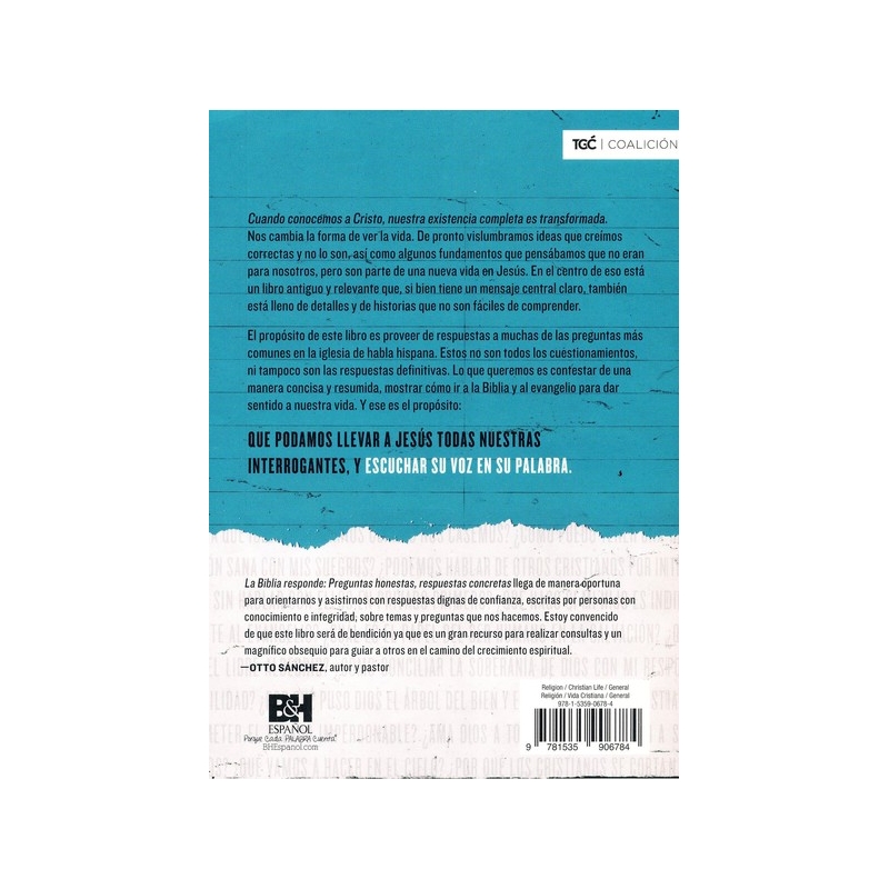 El propósito de este libro es proveer de respuestas a muchas de las preguntas más comunes en la iglesia del mundo hispano. Estas no son todas las preguntas, ni tampoco son las respuestas definitivas. Lo que queremos es responder de una manera concisa y resumida, mostrando cómo podemos ir a la Biblia y al evangelio para dar sentido a nuestras vidas. Y ese es el propósito: que podamos llevar a Jesús todas nuestras interrogantes, y escuchar Su voz en Su Palabra