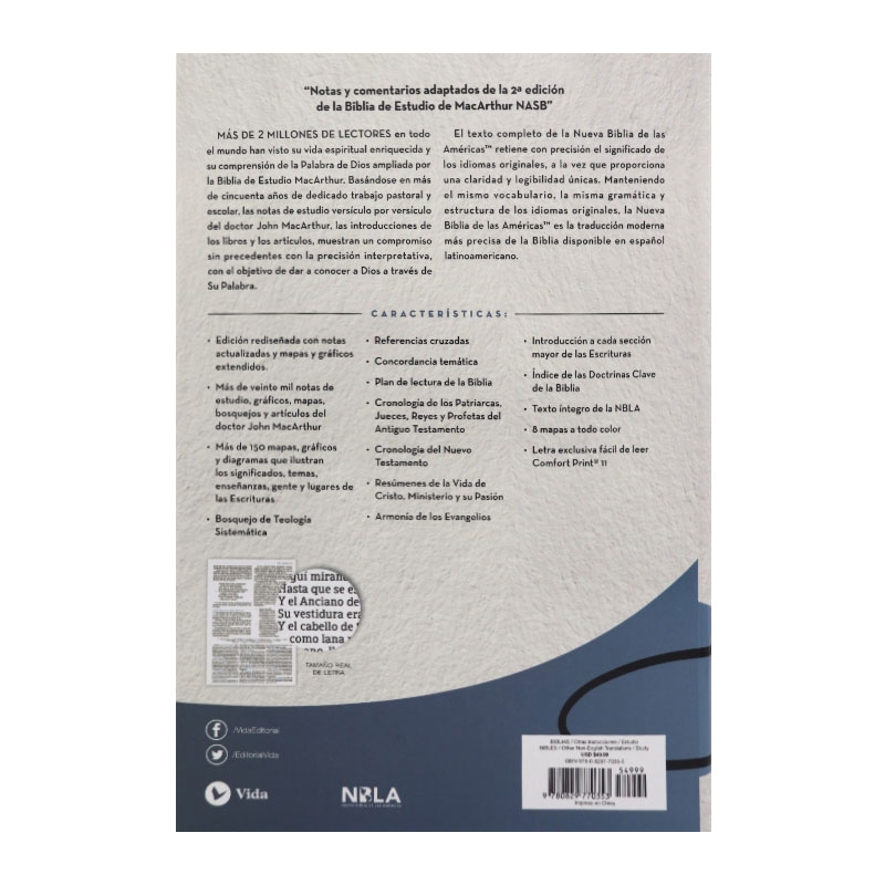 La NBLA Biblia de Estudio MacArthur es ideal para el estudio serio de la Palabra. Dr. John MacArthur reunió en un solo volumen todo su trabajo pastoral y erudición de más de 35 años para crear la Biblia de Estudio más exhaustiva disponible hoy en día. En ninguna otra Biblia de Estudio se puede encontrar una profundidad similar y que explique el contexto histórico, explicando el significado del texto, y expresándolo de manera práctica para la vida del lector.