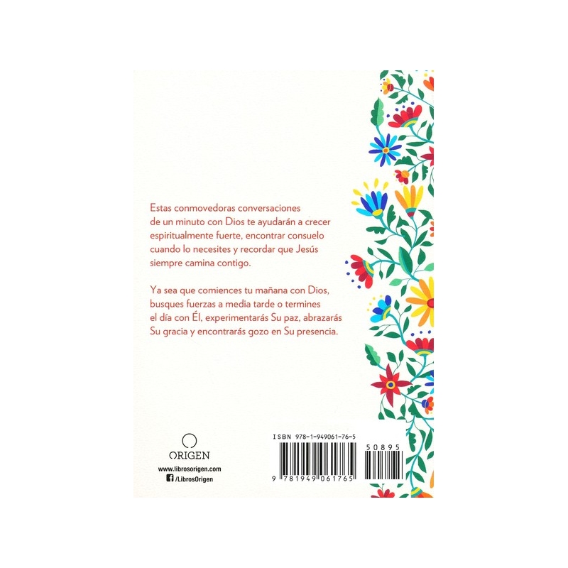 Acércate a Dios hoy. Acérquese a Dios con alabanza y acción de gracias con estas reflexivas y profundas oraciones. Esta encantadora recopilación de conversaciones de un minuto con Dios te ayudará a compartir el deseo de tu corazón de caminar con Jesús, crecer espiritualmente, compartir con otras personas y encontrar consuelo. Ya sea que comiences tu mañana con Dios, encuentres fuerzas a media tarde o cierres el día con Él, experimentarás Su paz, abrazarás Su gracia y encontrarás gozo en Su presencia.
