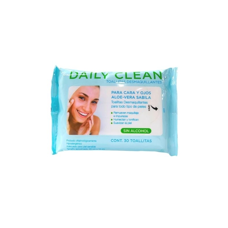 DAILY CLEAN ALOE AND ALOE VERA MAKEUP REMOVER WIPES w/30 Pcs