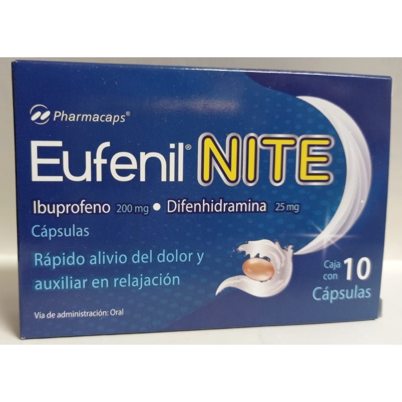 EUFENIL NITE (IBUPROFENO/DIFENHIDRAMINA) 200MG/25MG CON 10 CAPSULAS
