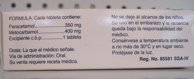 Sustancias Activas: PARACETAMOL/METOCARBAMOL