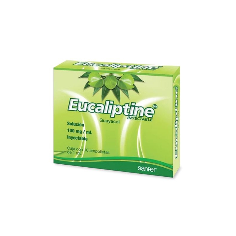 EUCALIPTINE Expectorante. Auxiliar en el tratamiento sintomático de infecciones de vÃas respiratorias altas, incluyendo faringitis, laringitis, bronquitis. DOSIS Y VÃA DE ADMINISTRACIÓN Intramuscular. Dosis recomendadas: Usualmente 2 ampolletas en 24 horas (1 cada 12 horas). Dependiendo de la severidad, la dosis puede aumentarse a 3 ampolletas en 24 horas (1 cada 8 horas) o disminuirse a 1 ampolleta cada 24 horas. ESPERO Y ESTA INFORMACION SEA DE AYUDA SI TIENE ALGUNAOTRA PREGUNTA POR FAVOR NO DUDE EN COMUNICARSE CON MIGO. Tel 877 772 0076