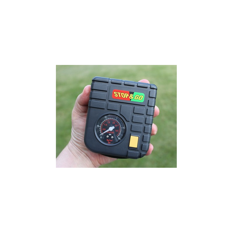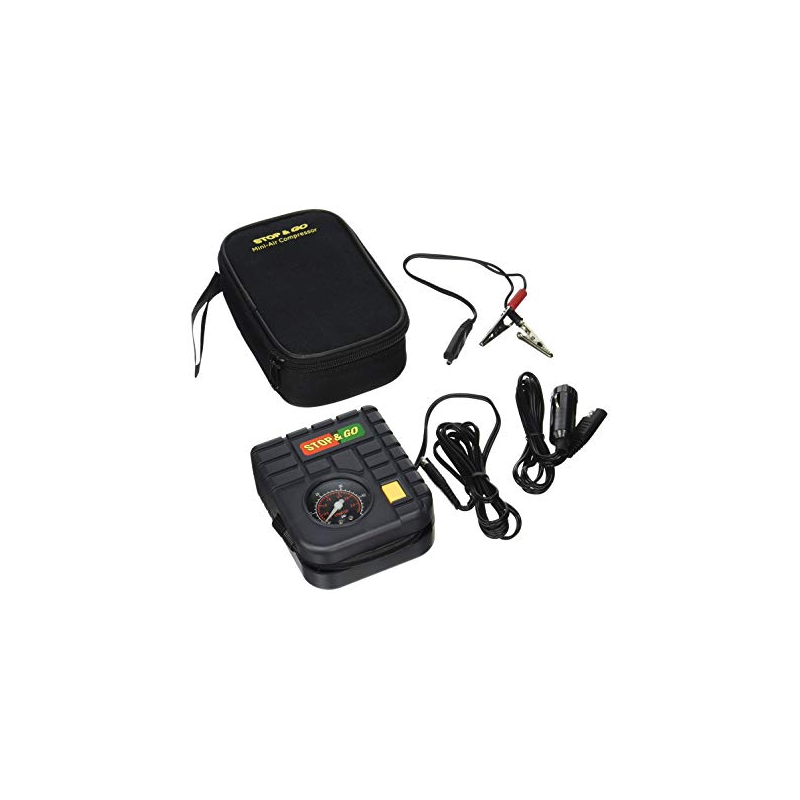 El inflador de aire portátil portátil de Stop & Go mide solo 4 "x 2" x 6 ", lo que permite que se pueda llevar en prácticamente cualquier motocicleta, scooter o cuatriciclo. El built-in calibre le permite observar el aumento de presión con una lectura de hasta 50 PSI. También viene con una luz LED incorporada que se ilumina cuando se utilizan las pinzas de cocodrilo o el zócalo. El neumático de su motocicleta estará completamente inflado en menos de 10 minutos. Y con esta unidad también tiene la capacidad de inflar balones deportivos y equipos de campamento. En la carretera o en el desierto siempre tendrá aire exterior limpio disponible y nunca habrá necesidad de recambios o repuestos.