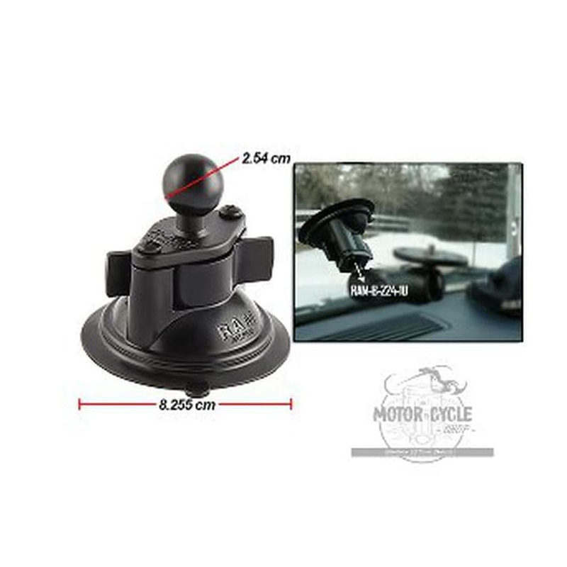 El soporte RAM-B-224-1U consiste en una base con bloqueo de ventosa de 3.3" de diámetro que está conectada a una base de diamante (RAM-B-238U) con una bola de goma de 1".