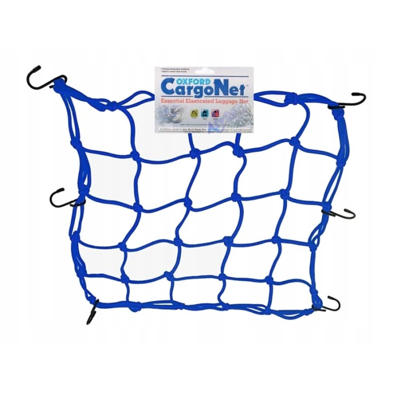 Las redes de carga son un medio complementario para transporta de manera seguro artículos redondos, en el asiento trasero o en el  portaequipajes de su motocicleta. Esta resistente red elástica con la reconocida calidad de OXFORD cumple ese cometido.