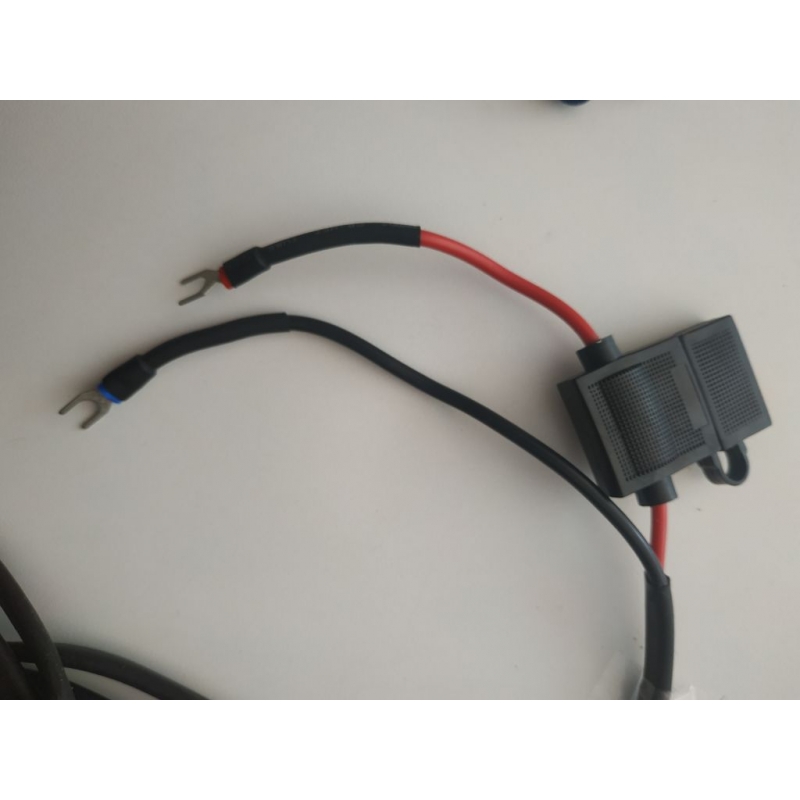 Paso uno: comience colocando el conector del relevador en el vehículo, deberá ubicarse lo más cerca de la batería para que la conexión a la alimentación de poder se pueda realizar al final de la instalación. (El cable de la terminal de la batería tiene una longitud de 61cm)