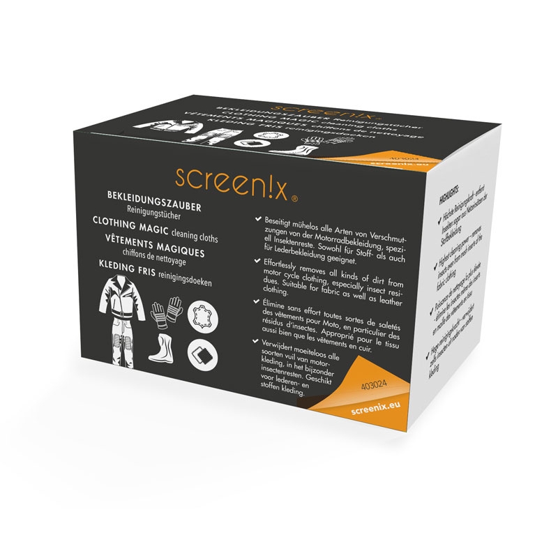 Paños de limpieza para ropa Screen!x. Desarrollados y fabricados en Austria.