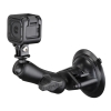 El kit completo RAM-B-166-GOP1U consta de un soporte de copa de succion  de bloqueo giratorio de  3,3" de diámetro + un brazo mediano de aluminio  de doble zócalo de longitud 3.69”  + un adaptador  para camaras de accion como GoPro® Hero y otras.