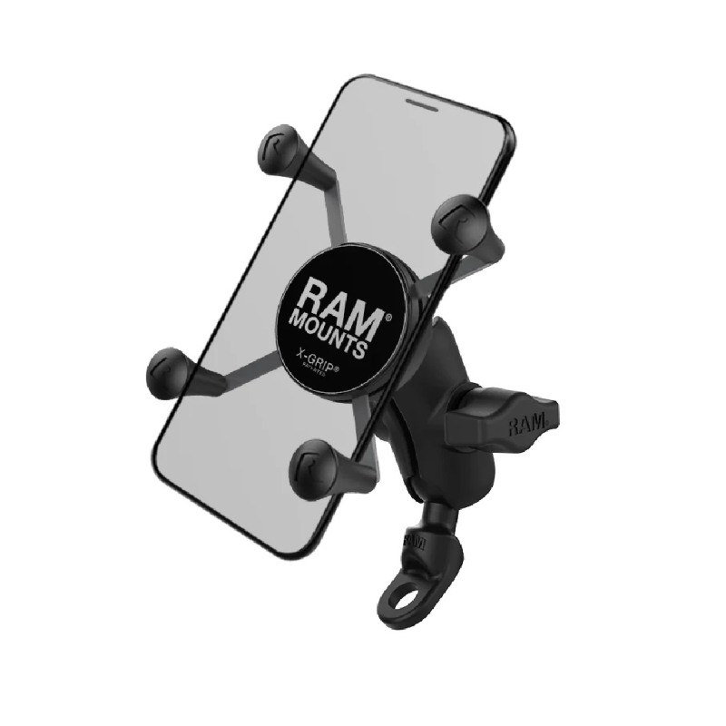 El kit completo  RAM-B-272-A-UN7 consta de un soporte angulado, un brazo corto de aluminio y una base universal X-Grip  modelo RAM-HOL-UN7BU para teléfonos chicos y medianos.