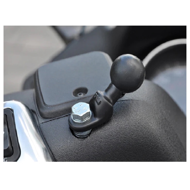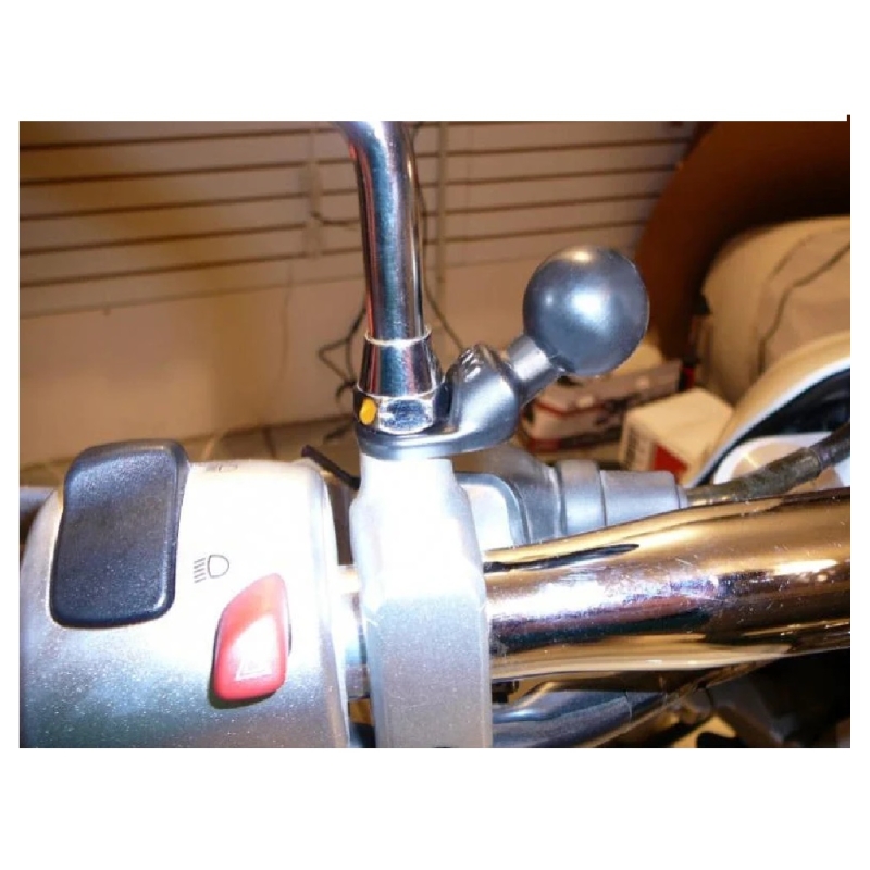 El soporte angulado (RAM-B-272U) consta de una bola de goma de tamaño B de 1" unida a una base angulada de metal recubierto de zinc. Es ideal para colocarse en entre el espejo retrovisor y la base en el manillar en todo tipo de motos donde el espacio es reducido, ofreciendo una instalacion sencilla y rapida.