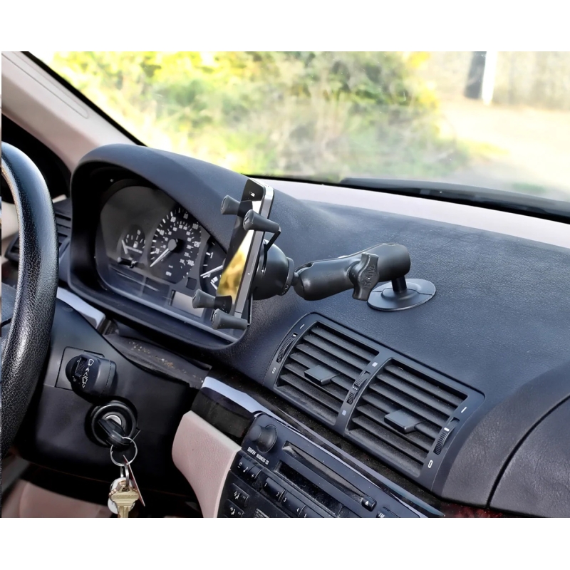 El brazo de aluminio grado marino con longitud media ( RAM-B-201U), tiene una entrada en ambos extremos que se adapta a las bolas de tamaño B de 1". Un único resorte dentro del brazo mantiene abierta la toma, lo que permite insertar la bola en la conexión. La tecnología de socket de RAM permite un ajuste casí infinito para lograr el ángulo de visión perfecto.
