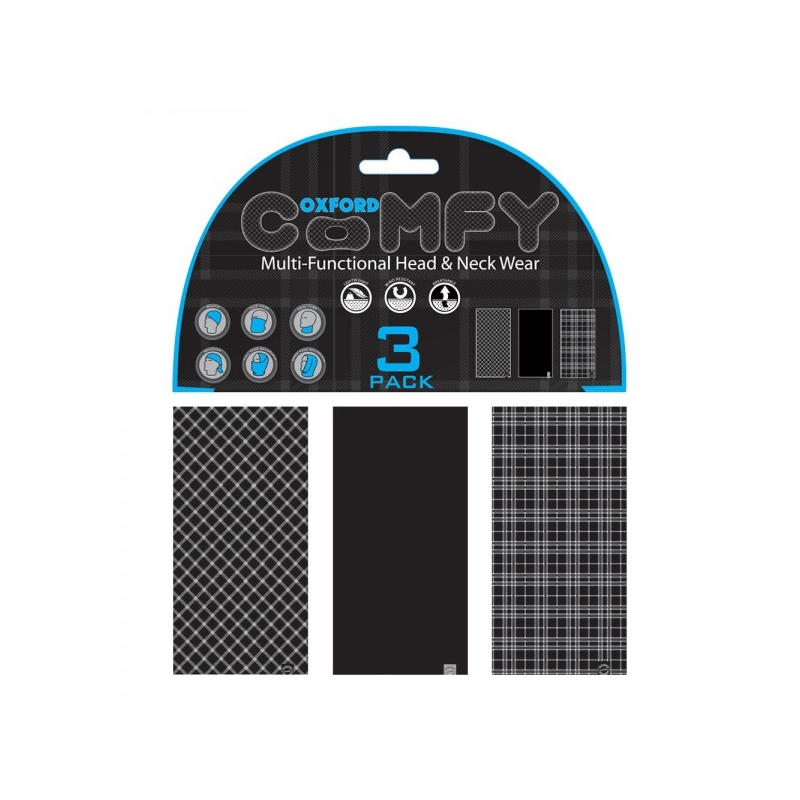 Las bandanas multifuncionales COMFY de la marcar britanica Oxford brindan comodidad durante todo el año y son adecuadas para muchas actividades al aire libre como: ciclismo, motociclismo, excursionismo, protegiendo cuello, boca y cabeza. Ofrecen proteccion contra la radiacion UV y puede utilizarse debajo del casco.
