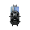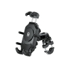 El teléfono se inserta a una sola mano empujando el sujetador superior hacia arriba el cual se expande y retrae fácilmente y que se asegura una vez en un su sitio con una perilla de bloqueo sujetando firmemente su teléfono aun en los caminos accidentados.
