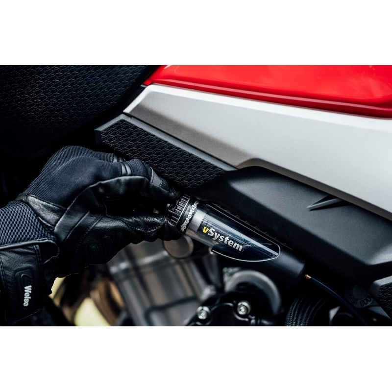 Al conectar un engrasador de cadena vSystem a tu moto, tienes un sistema que se activa automáticamente al arrancar. Aunque funciona con el vacío del motor, el engrasador vSystem no absorbe potencia ni afecta al rendimiento del motor, ya que funciona exclusivamente por vacío.