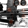 BK805 funciona con la mayoría de bicicletas y tamaños de cuadros. Incluye soportes de banda elástica y bridas.