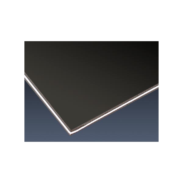 Placa de PVC de acabado brillante elaborada en tres capas negro/blanco/negro. Apropiada para el diseño de micas protectoras custom. Sus medidas son 28.5cm x 48.5 cm.