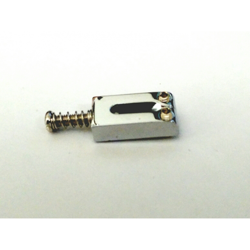 Una Montura de terminado croma fino para Guitarra Fender Stratocaster Squire, Telecaster MIM y otras de su tipo. Por favor nota que lleva el tornillo de ajuste en el centro. La octavación se ajusta con una llave Allen.
