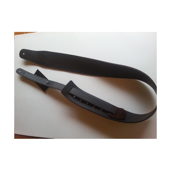 Correa de auténtico Cuero de Ganado Vacuno en fino acabado.  Su anchura de 6.5 cm te permite un confortable y firme sostén de tu guitarra o bajo por más tiempo.   No está pegada; está cosida con doble capa de cuero lo cual las hace muy durables y elegantes.  El diseño sin hebillas evita que se arrugue o se corra y te permite un fácil ajuste a la medida que más te convenga.
