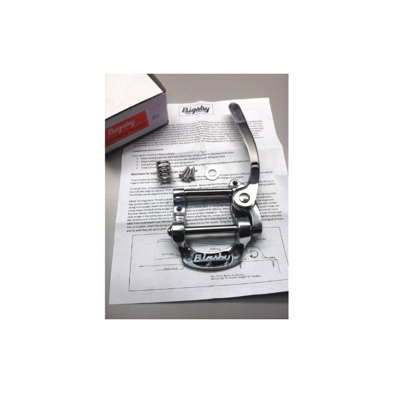 Bygsby auténtico, original, clásico, hecho en EU. Acabado en Aluminio Brillante. Designado para usarse en una variedad de guitarras de tapa plana y cuerpo sólido  como  Gibson SG, Gibson Flying V, Explorer, Firebird, similares Epiphone, Fender Telecaster, etc.  Facil de instalar, incluye instrucciones.