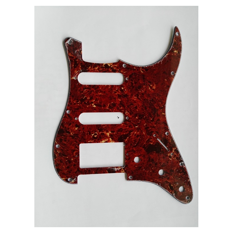 Esta es la mica tradicional exacta y precisa de la guitarra Stratocaster para dos pickups Single Coil y un pickup Humbucker (H/S/S). En vistoso color Tortuga. Su acabado es brillante y está blindada en la cara interior.